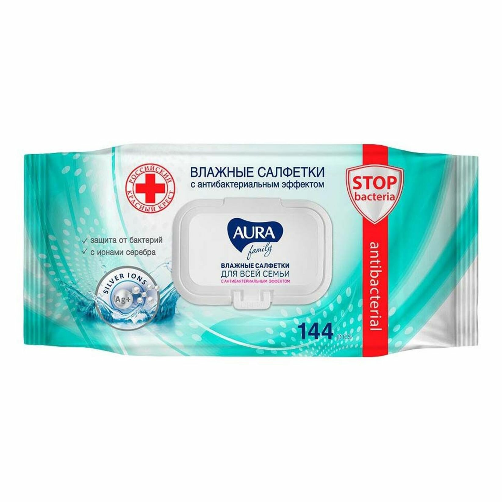 Салфетки влажные Aura Family, с антибактериальным эффектом, 144 шт