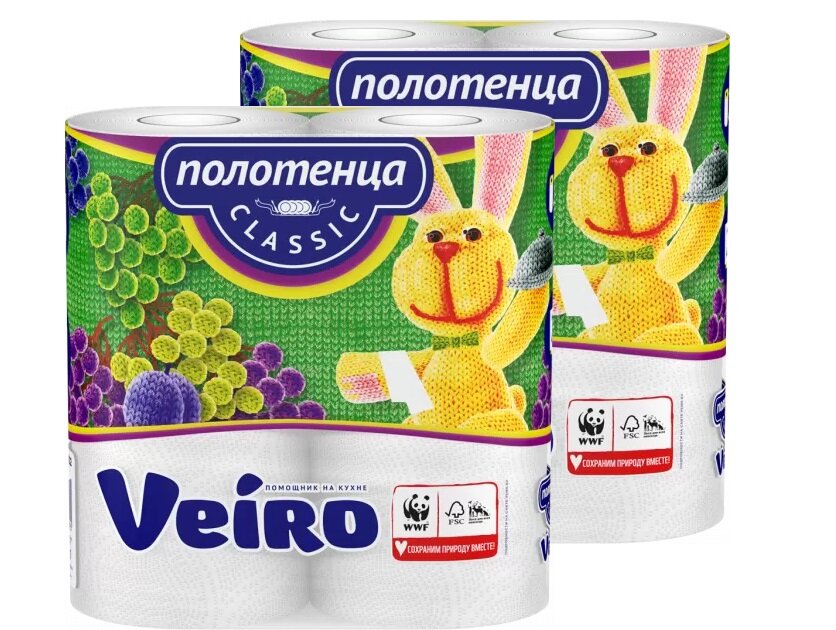 Купить Veiro полотенца бумажные Classic, 2-х слойные, 2 шт. в уп., 2 уп.