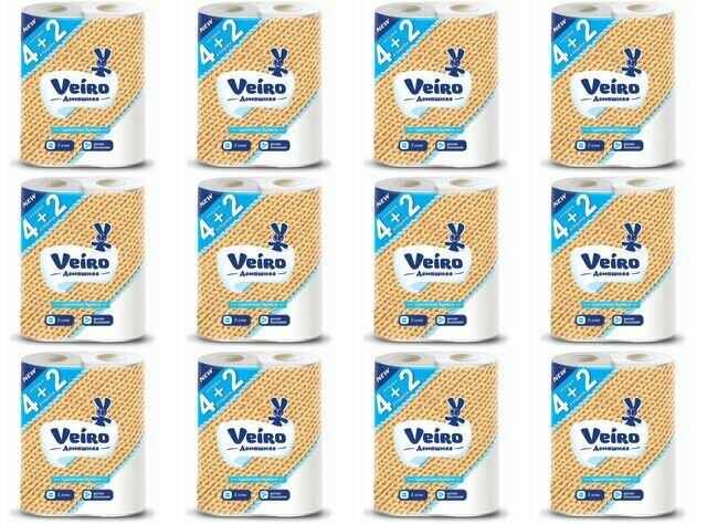 Туалетная бумага Veiro Домашняя 2 слоя 4+2шт.промо белая 6 рулонов в пачке 12 пачек в упаковке всего 72 рулона