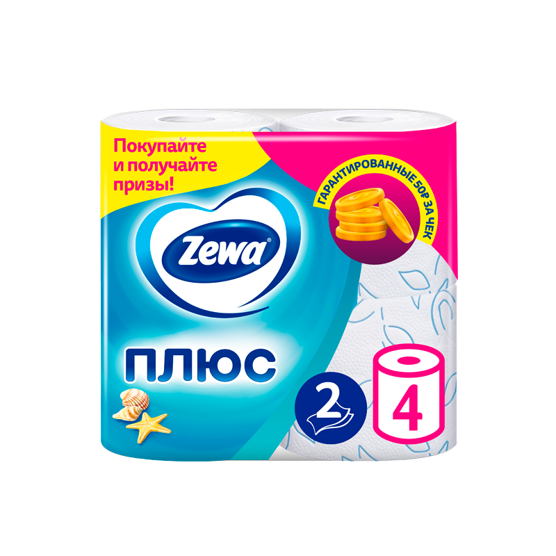 Туалетная бумага Zewa Плюс аромат «Свежесть океана», 2 слоя, 4 рулона