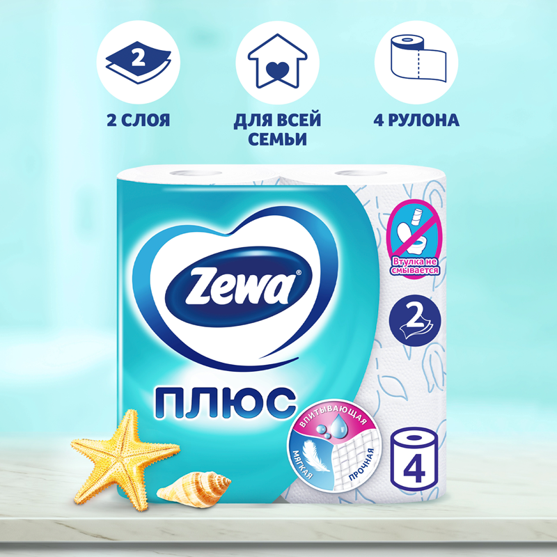 Zewa туалетная бумага Plus 2-х слойная Океан 4шт