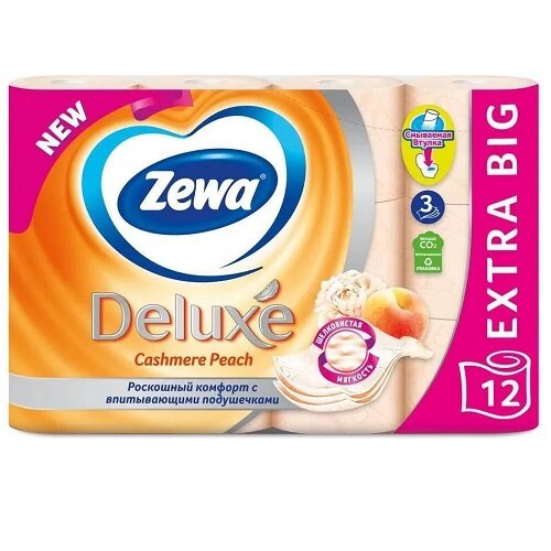 ZEWA, Туалетная бумага, Delux Персик, 3сл, 12шт