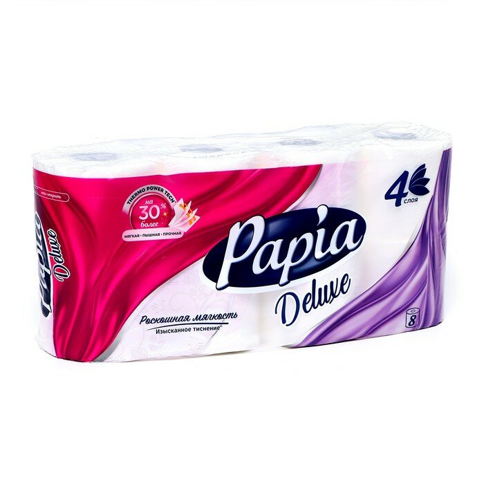 Купить Papia Туалетная бумага Papia Deluxe, 4 слоя, 8 рулонов