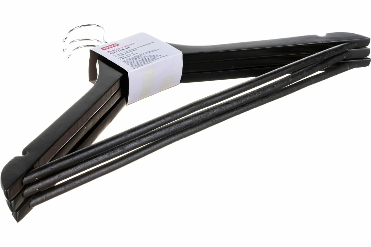 Вешалка-плечики ATTACHE деревянная, с выемками и перекладиной черная (размер 48-50, 3 штуки в упаковке)