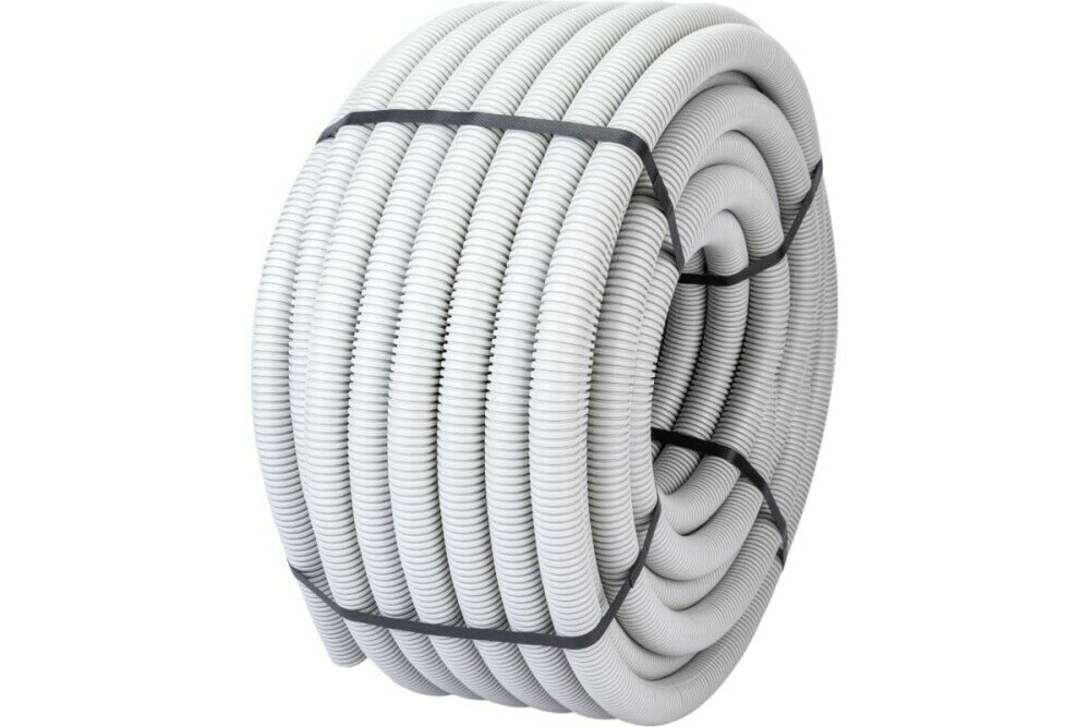 Купить Труба гофрированная d32 ПВХ серая с зондом н/г Строительная ЭРА (бухта 50 метров)