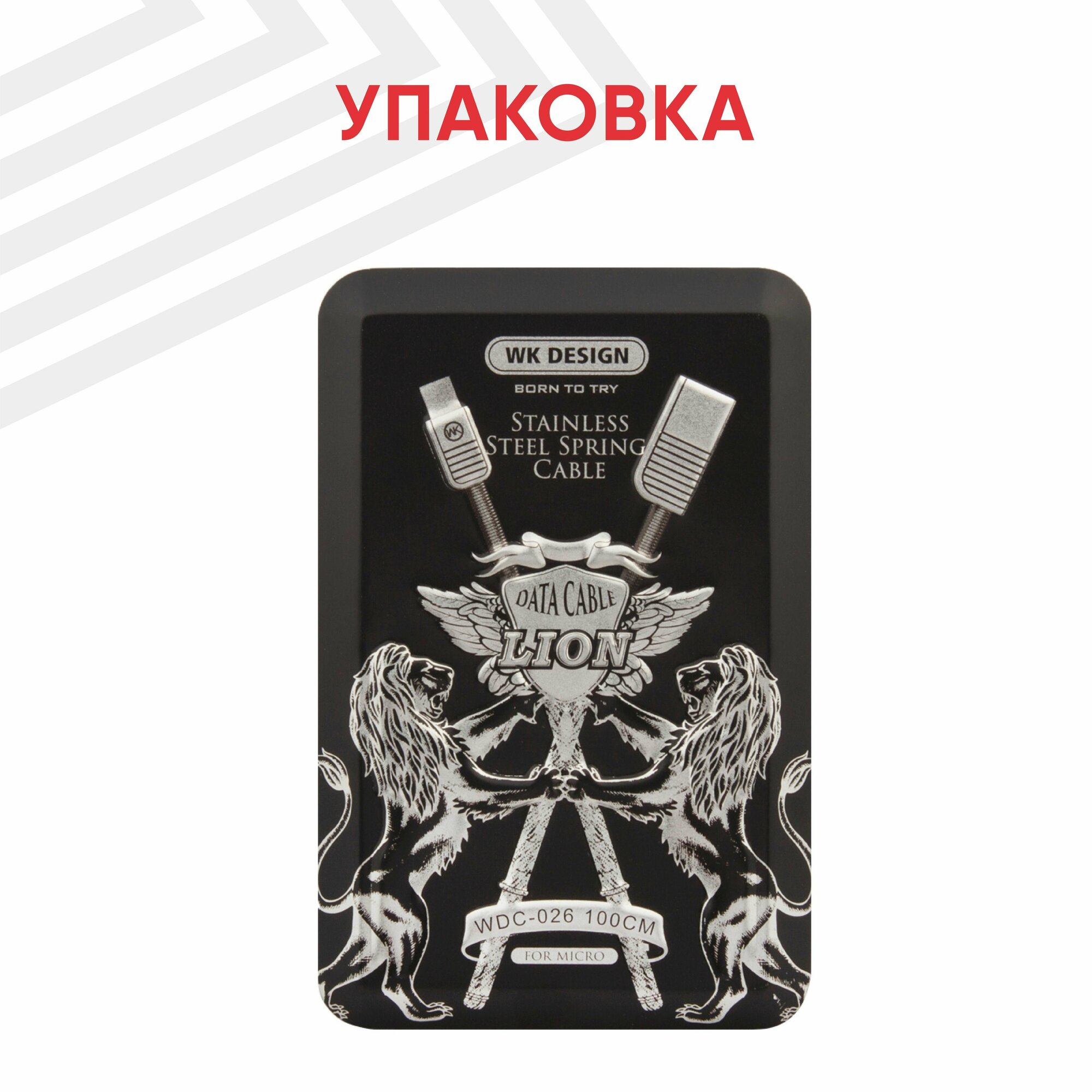 USB кабель WK Lion WDC-026m для зарядки, передачи данных, MicroUSB, 2.4А, 1м, металл, серебряный интересное: