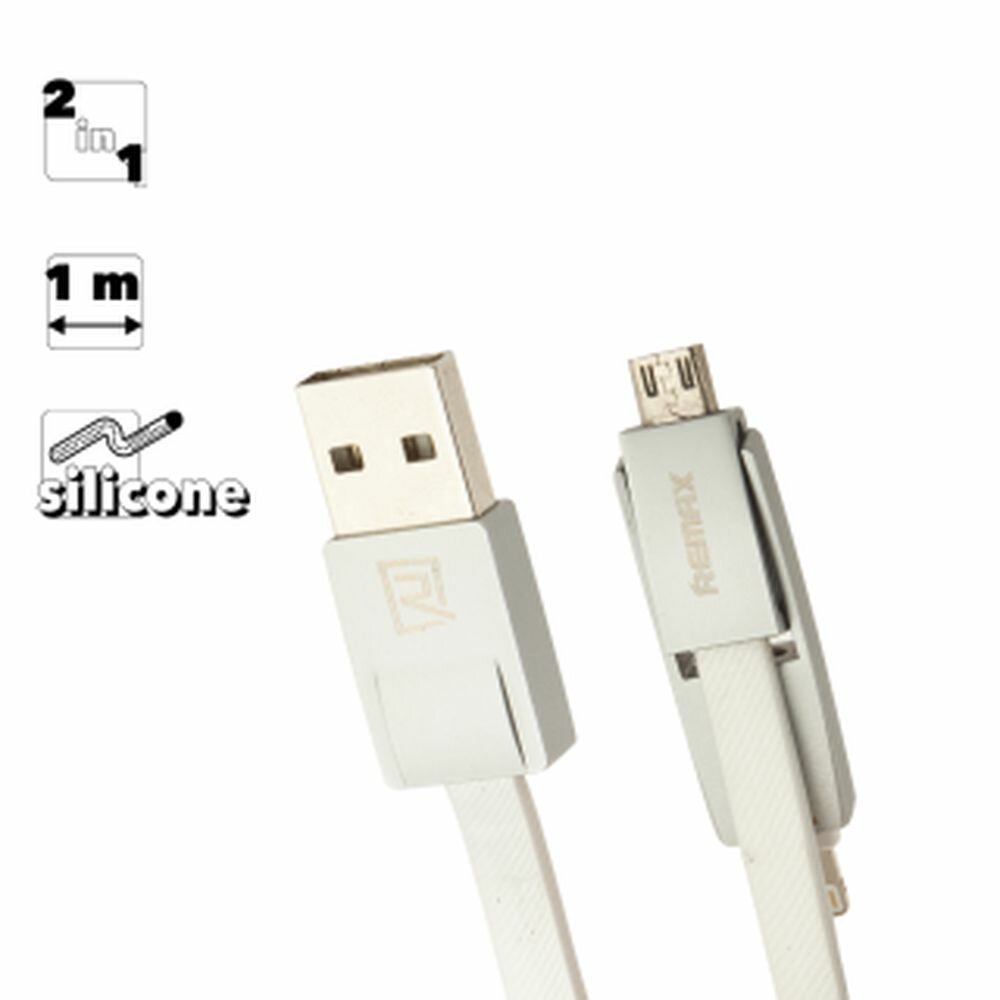 USB кабель Remax Strive 2в1 Cable RC-042t для смартфона Apple Lightning 8-pin, MicroUSB, серебряный
