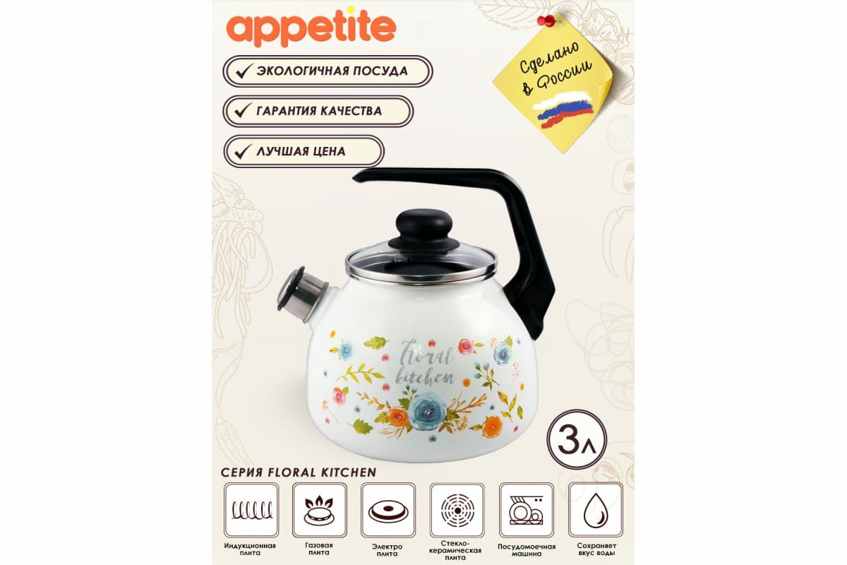 Appetite Чайник со свистком 4с209я, 3 л, Floral Kitchen