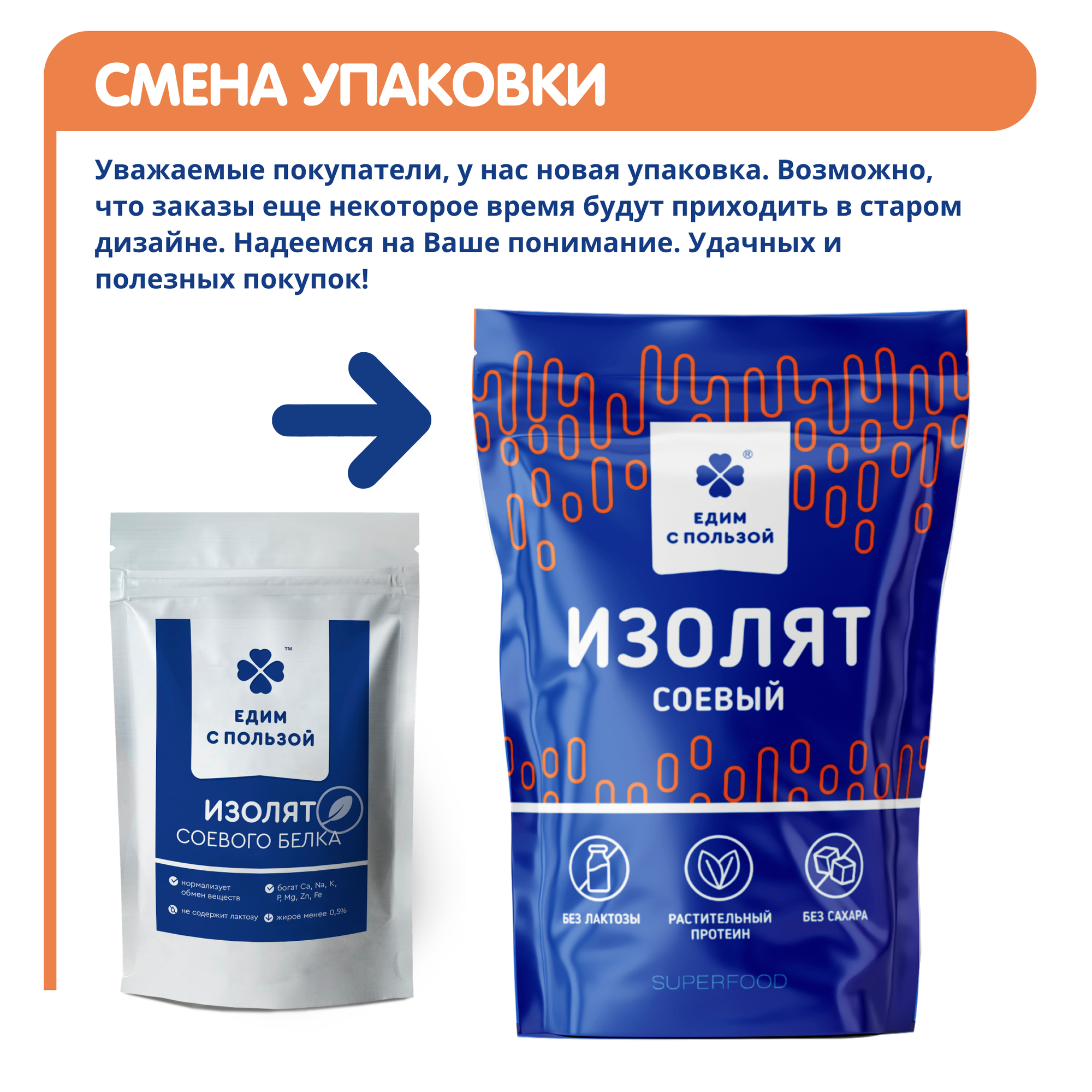 Протеин Едим с пользой Изолят соевого белка, 600 гр., нейтральный