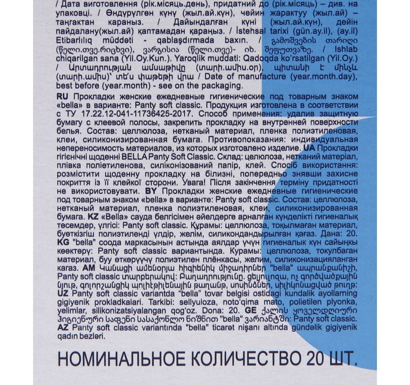 Bella PANTY Soft Classic Прокладки женские гигиенические ежедневные , 60 шт. Впитываемость 2к.
