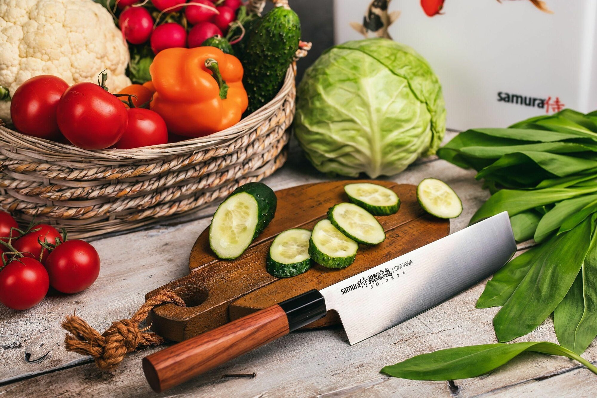 Ниже Вы можете прочитать отзывы на Нож кухонный стальной Накири (172мм) Samura Okinawa SO-0174/Y, ознакомится с подробными характеристиками, посмотреть интересные обзоры и фотографии на Нож кухонный стальной Накири (172мм) Samura Okinawa SO-0174/Y.