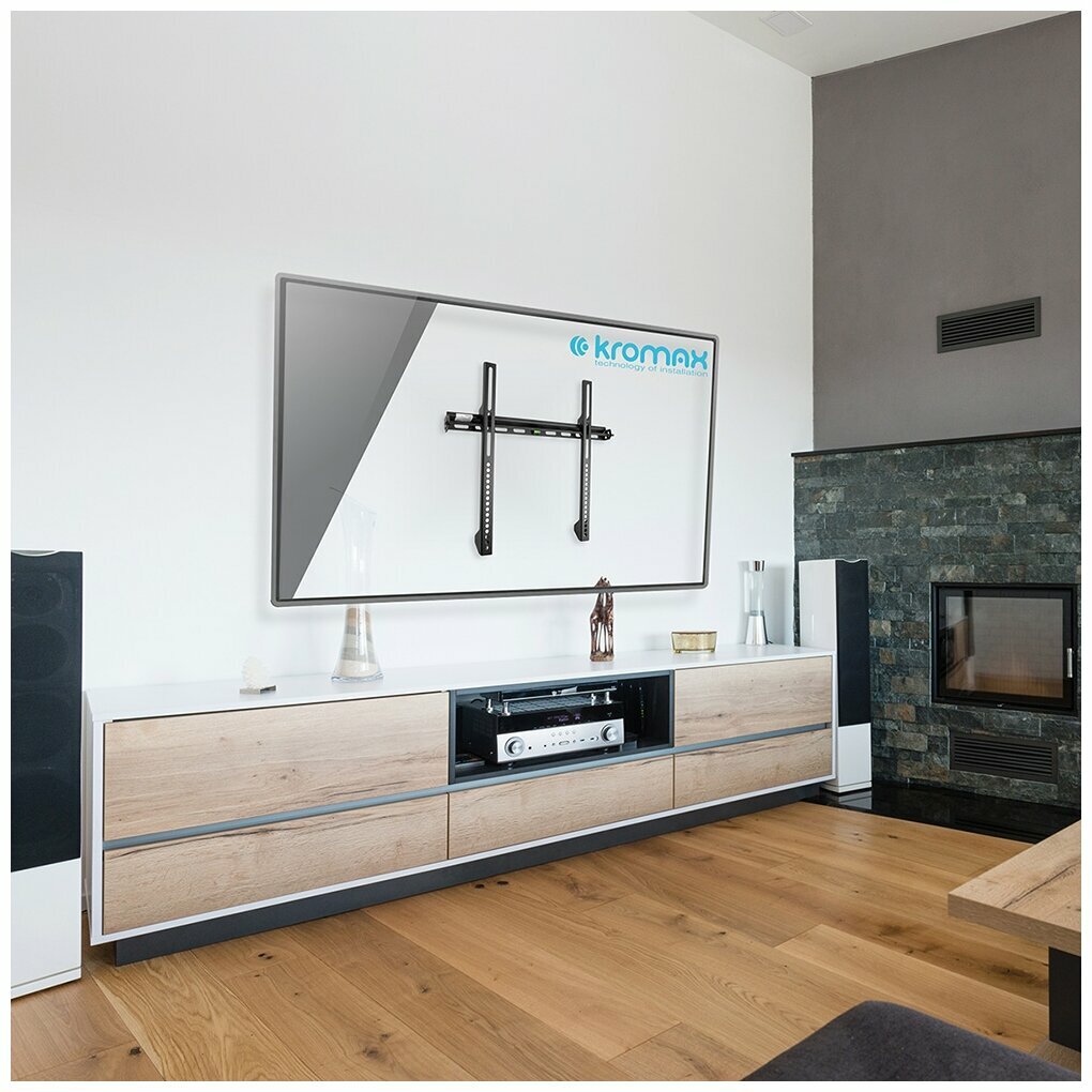 Кронштейны для техники Kromax Кронштейн настенный Kromax VEGA-11 22-65" (фиксированный, вылет 34 мм, до 50 кг, чёрный)
