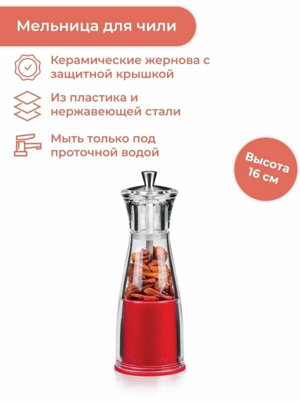 Tescoma Мельница для перца чили Virgo 16 см, прозрачный/красный