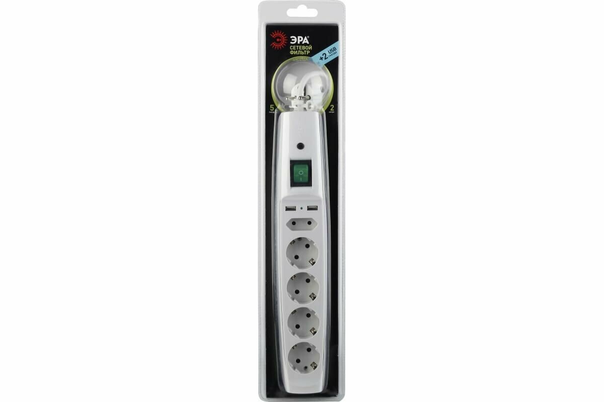 Сетевой фильтр c USB ЭРА-SFU-5es-2m-W