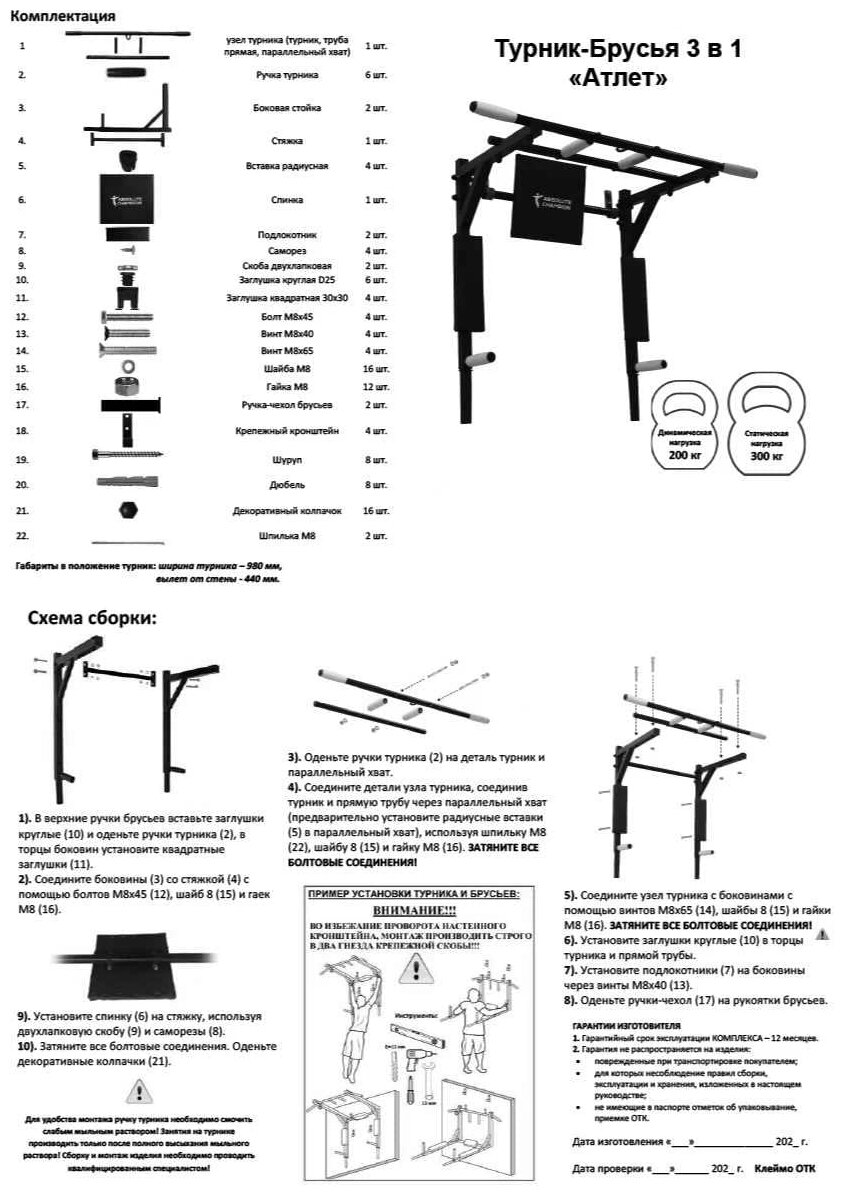 Турник 3 в 1 Атлет черный.Турник брусья пресс.Турник на стену 3в1.Турник для дома.Турник разборный.Турник брусья настенный 3 в 1 Absolute Champion.Турник настенный.Турник 3в1