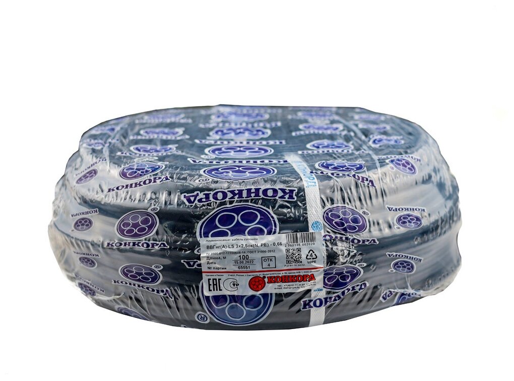 Силовой кабель ВВГнг(A)-LS 3х6 100метров Конкорд ГОСТ