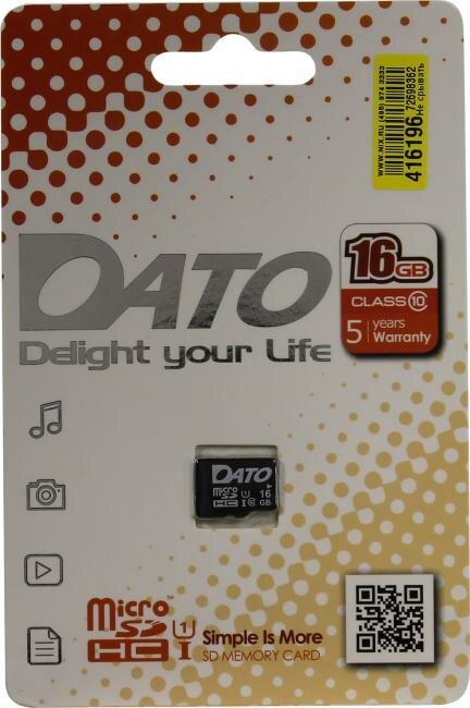 Ниже Вы можете прочитать отзывы на Карта памяти DATO microSDHC 16 ГБ Class 10, UHS-I U1, R/W 40/10 МБ/с, ознакомится с подробными характеристиками, посмотреть интересные обзоры и фотографии на Карта памяти DATO microSDHC 16 ГБ Class 10, UHS-I U1, R/W 40/10 МБ/с.