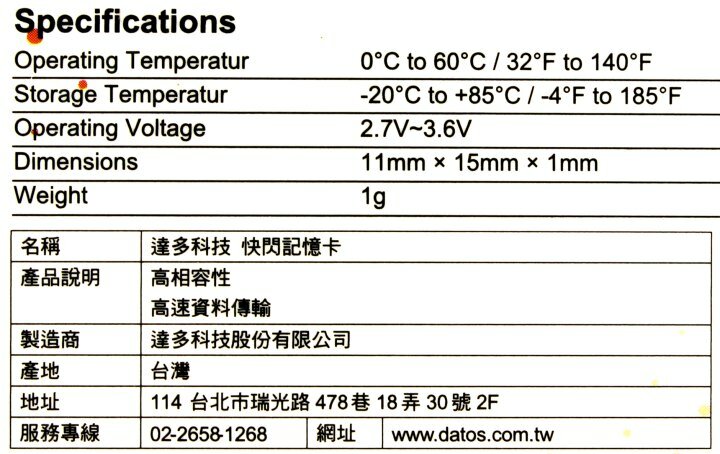 Носители информации Flash Card DATO DTTF016GUIC10