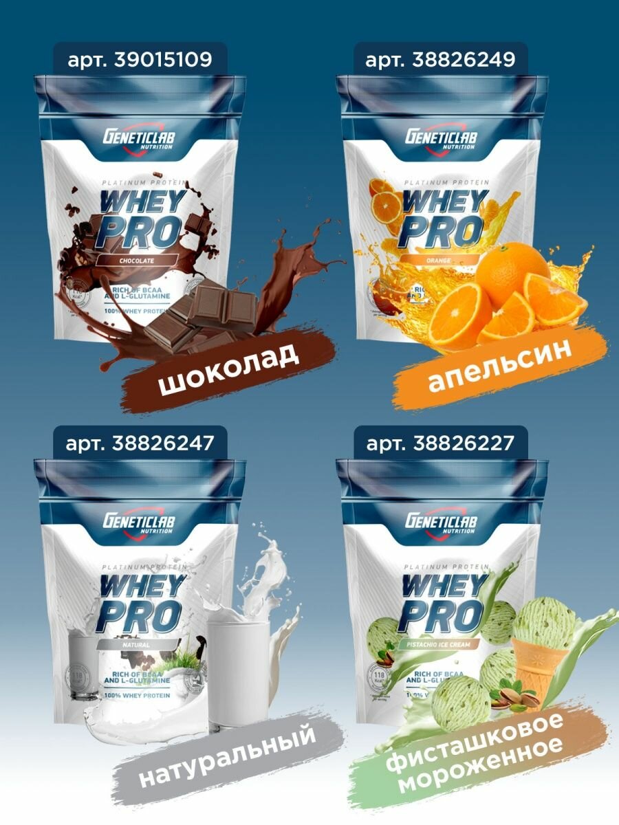 Протеин GeneticLab WHEY PRO, сывороточный, без вкуса, 100%, 1 кг
