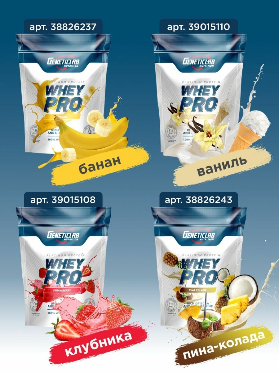 Протеин Geneticlab "Whey Pro", сывороточный, 1 кг, банан-земляника
