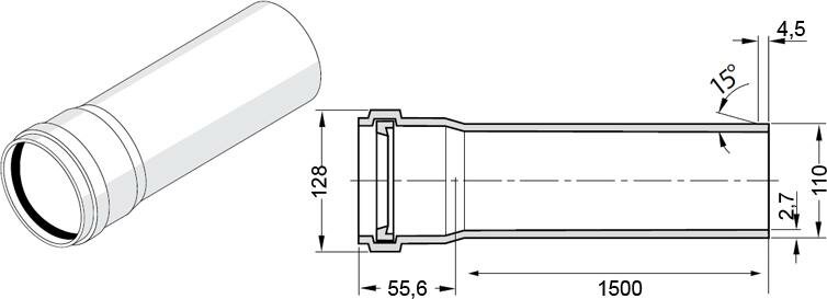 Канализационная труба диам. 110/1500 мм(11203041222) РЕХАУ