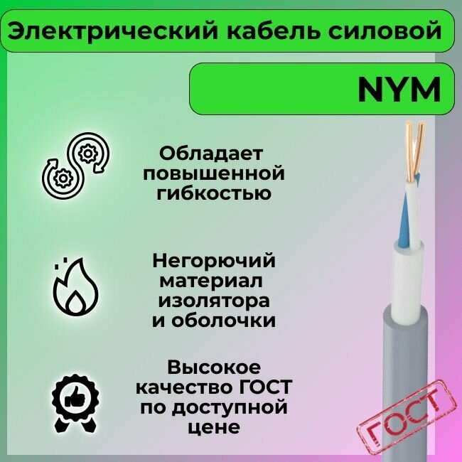 СохранитьПровод электрический/кабель ГОСТ NYM 2х2,5 (N,PE) - 15 м. Конкорд интересное: