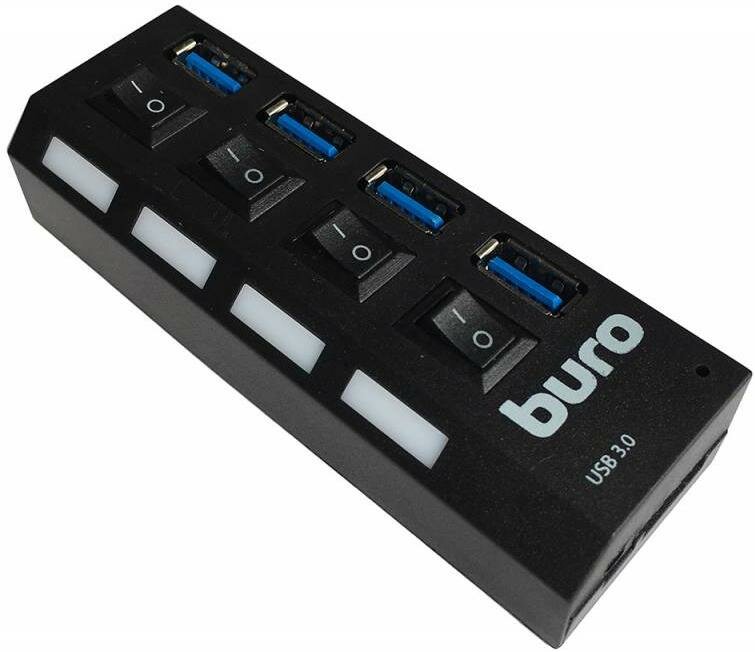 USB-концентратор Buro BU-HUB4-U3.0-L, разъемов: 4, черный