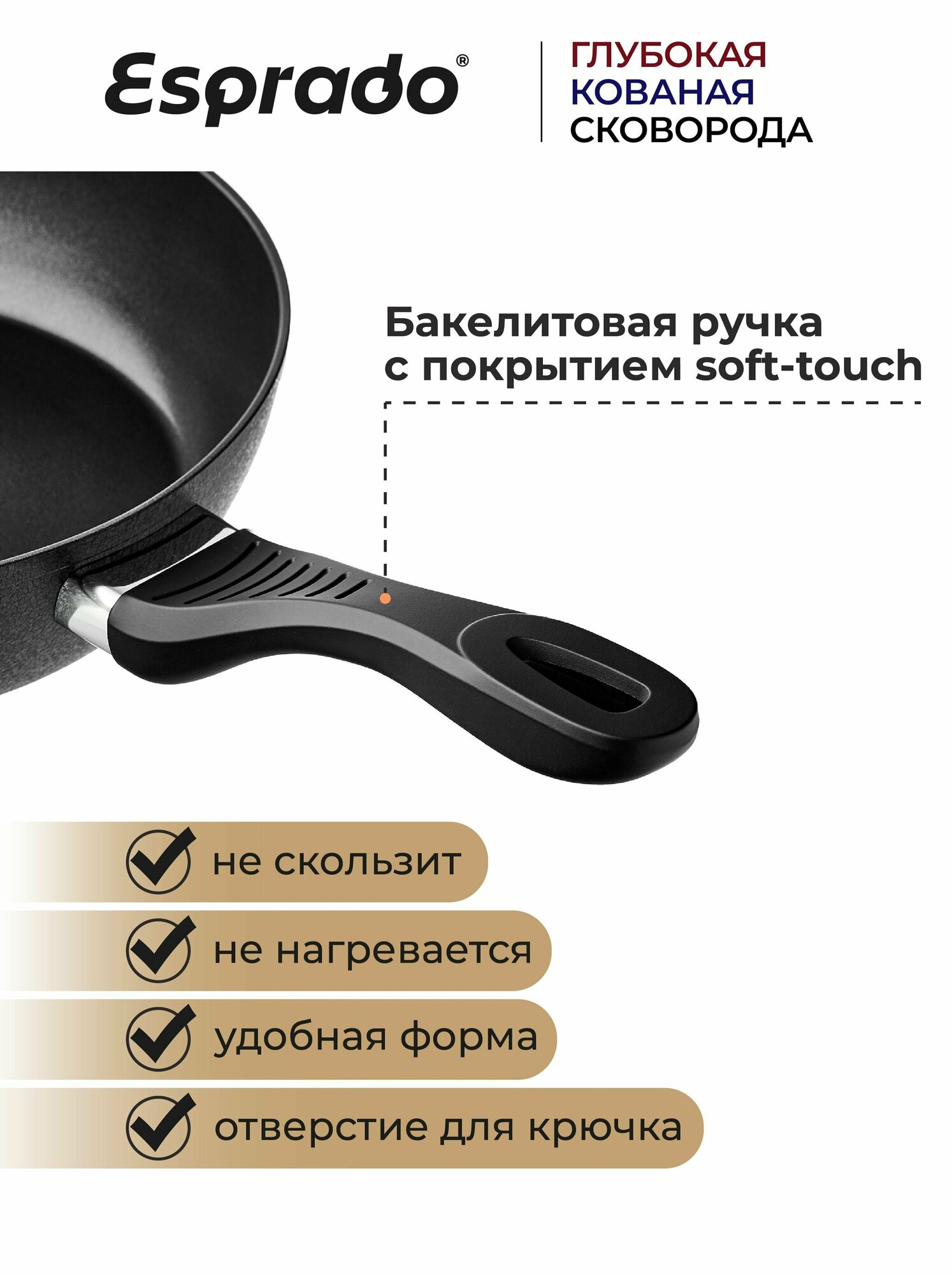Сковорода Esprado Rustica глубокая, 26x6,8 см, алюминий, антипригарное покрытие, индукция RUST26BE103