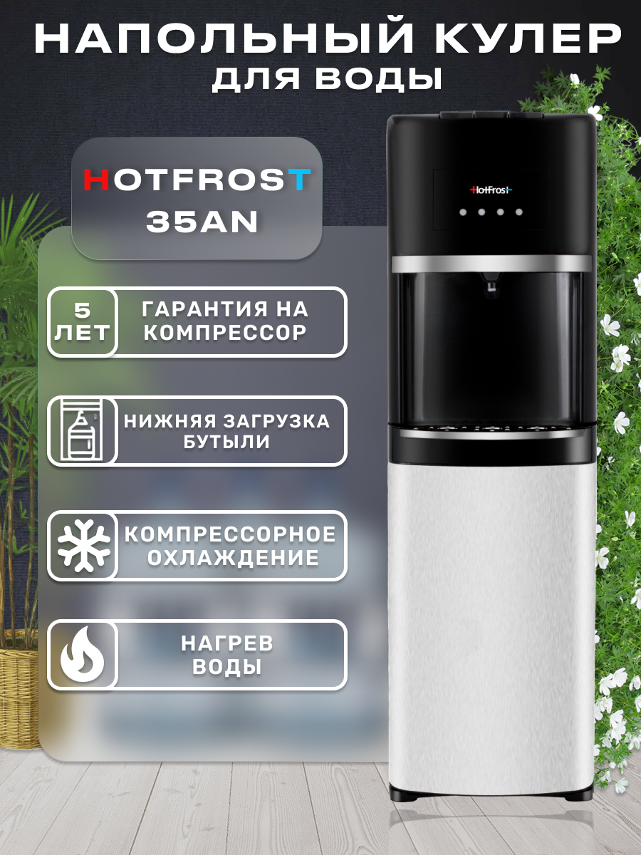Кулер HOTFROST 35AN, напольный, компрессорный, кнопка, серебристый/черный [120103501]