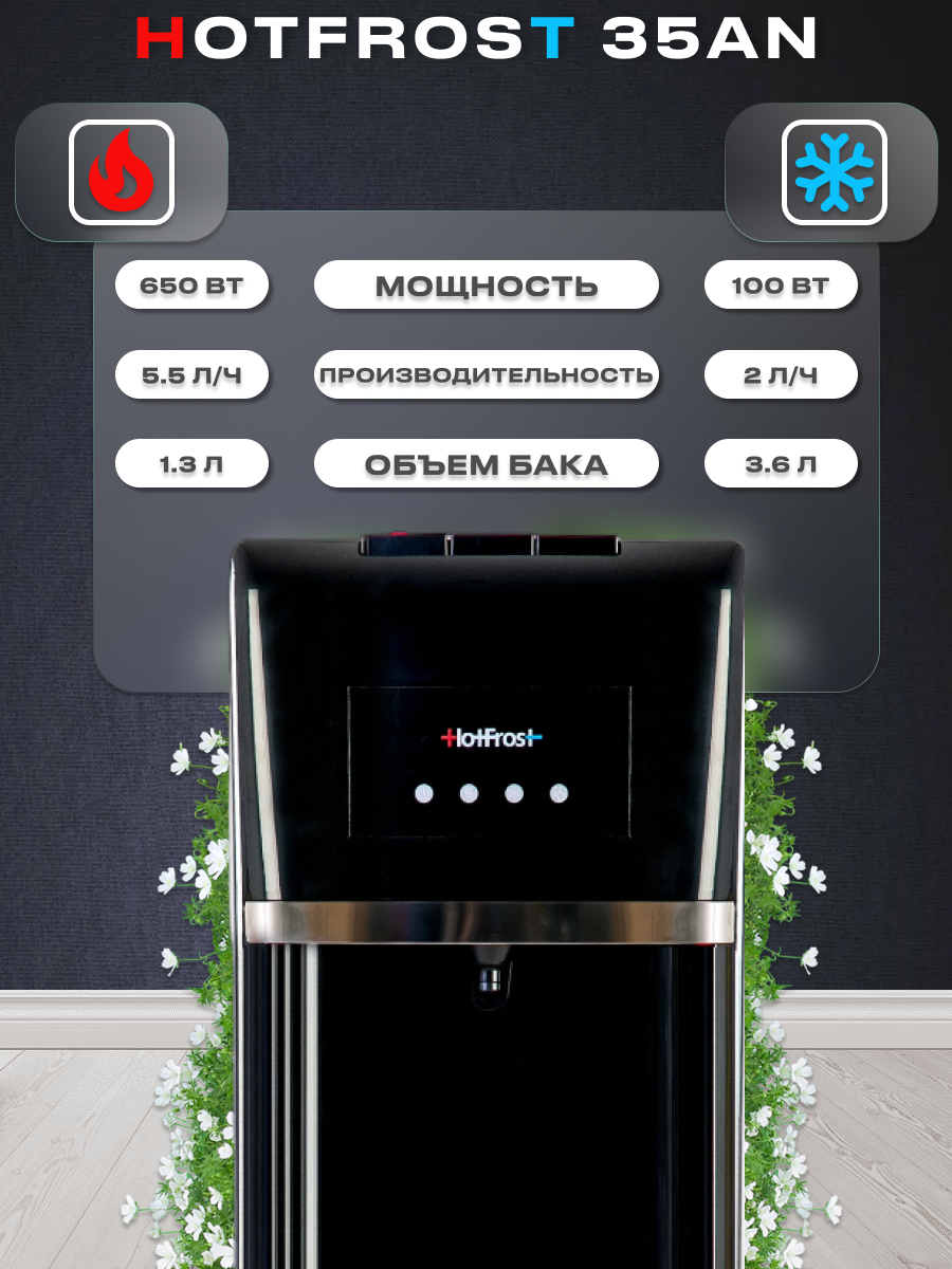 Ниже Вы можете прочитать отзывы на Напольный кулер HotFrost 35AN, черный/серебристый, ознакомится с подробными характеристиками, посмотреть интересные обзоры и фотографии на Напольный кулер HotFrost 35AN, черный/серебристый.