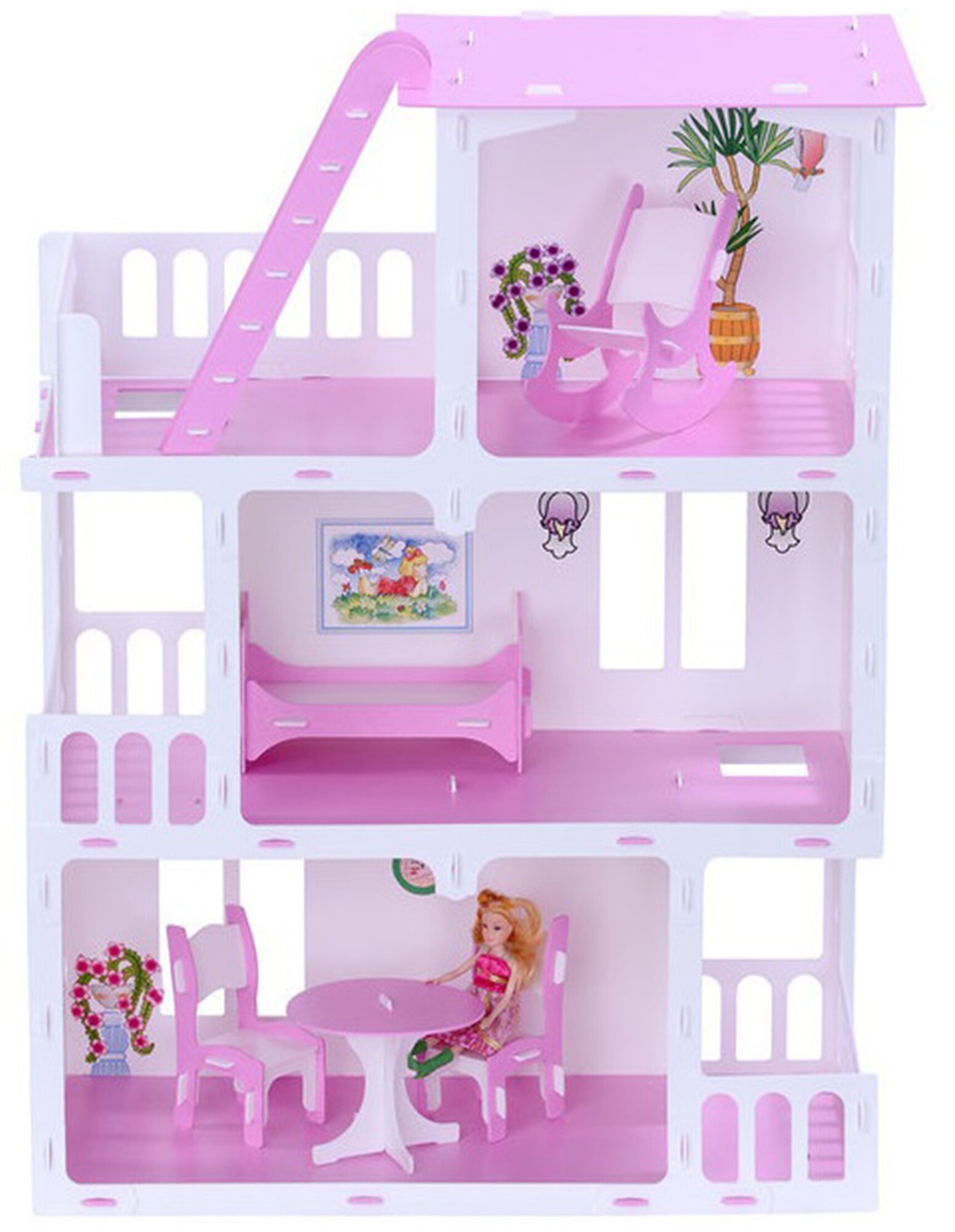 Домик для кукол "Дом Маргарита" цвет: бело-розовый (с мебелью) 000273 /Krasatoys/