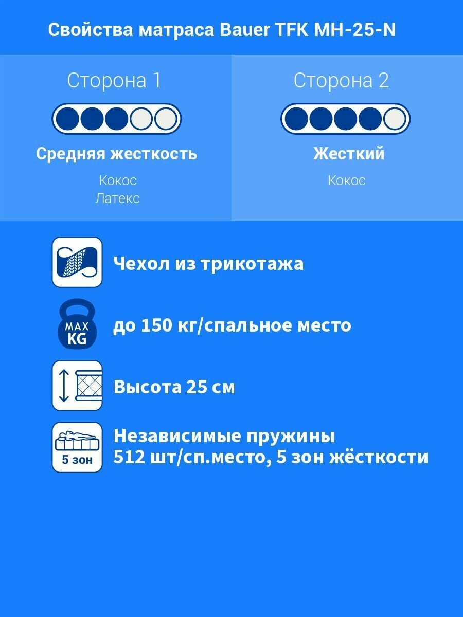 Матрас Alitte Bauer TFK MH-25-N, Размер 150х195