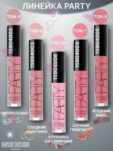 Белор дизайн Блеск для губ PARTY 2017 ном.010Клубника со сливкамисв.роз..6