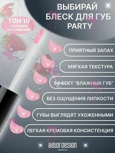 Belor Design Блеск для губ "PARTY" тон 10 клубника со сливками