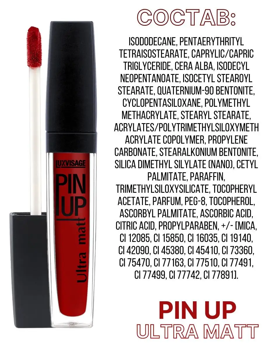 Блеск для губ `LUXVISAGE` `PIN UP` ULTRA MATT матовый тон 30 red salsa
