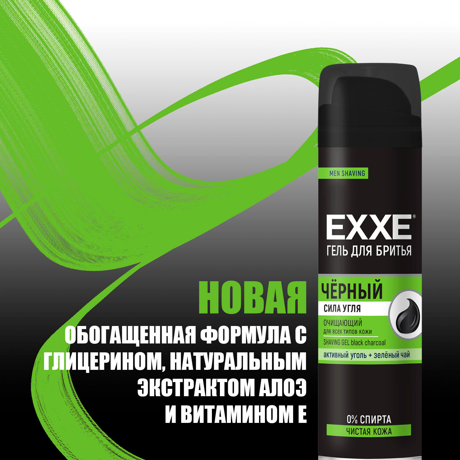 Эксе / EXXE - Гель для бритья Сила угля черный для всех типов кожи зеленый чай 200 мл