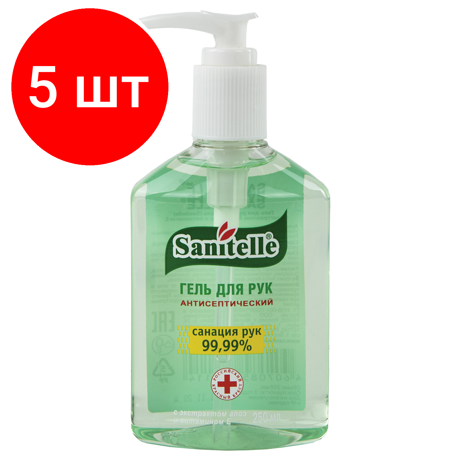 Купить Комплект 5 шт, Антисептик-гель для рук (спирт 66.2%) 250 мл SANITELLE (Санитель), Алоэ, дозатор