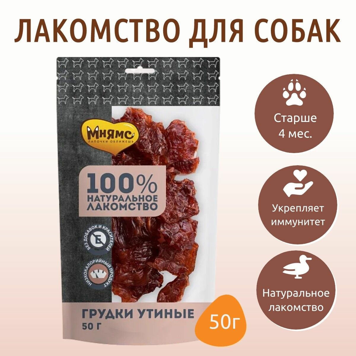 Лакомство для собак Мнямс Грудки утиные для всех пород, кусочки с уткой, 50г / снеки для животных