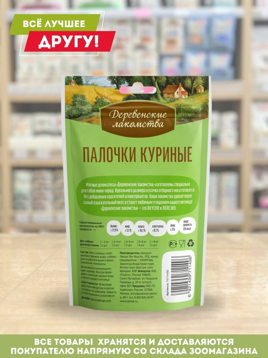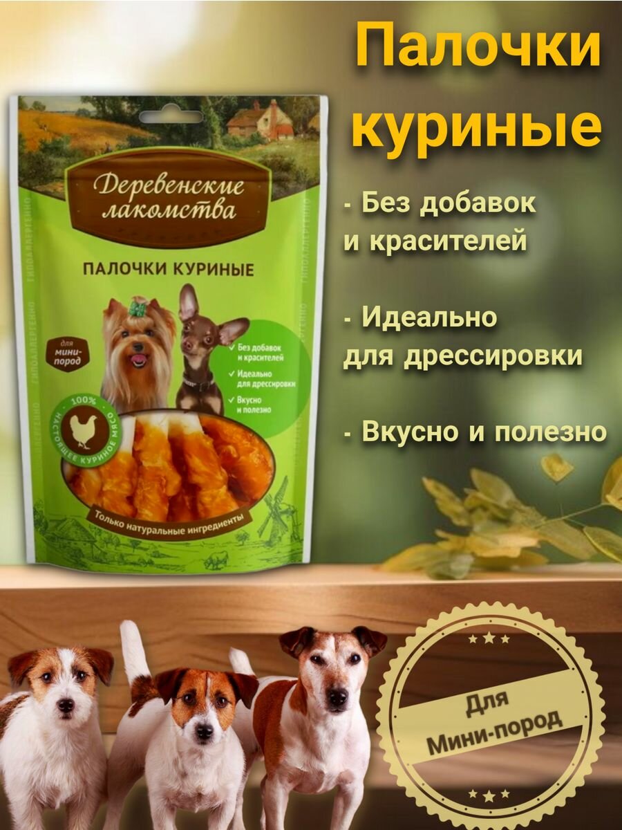 Лакомства деревенские "Палочки куриные" для собак мини-пород, 55 г