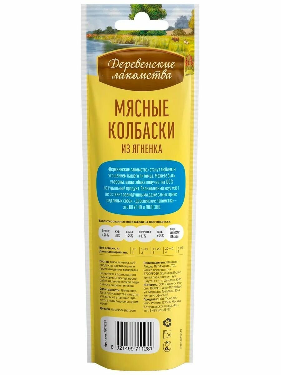 Лакомство Деревенские лакомства Мясные колбаски для собак с ягненком 45г 7шт 79711281