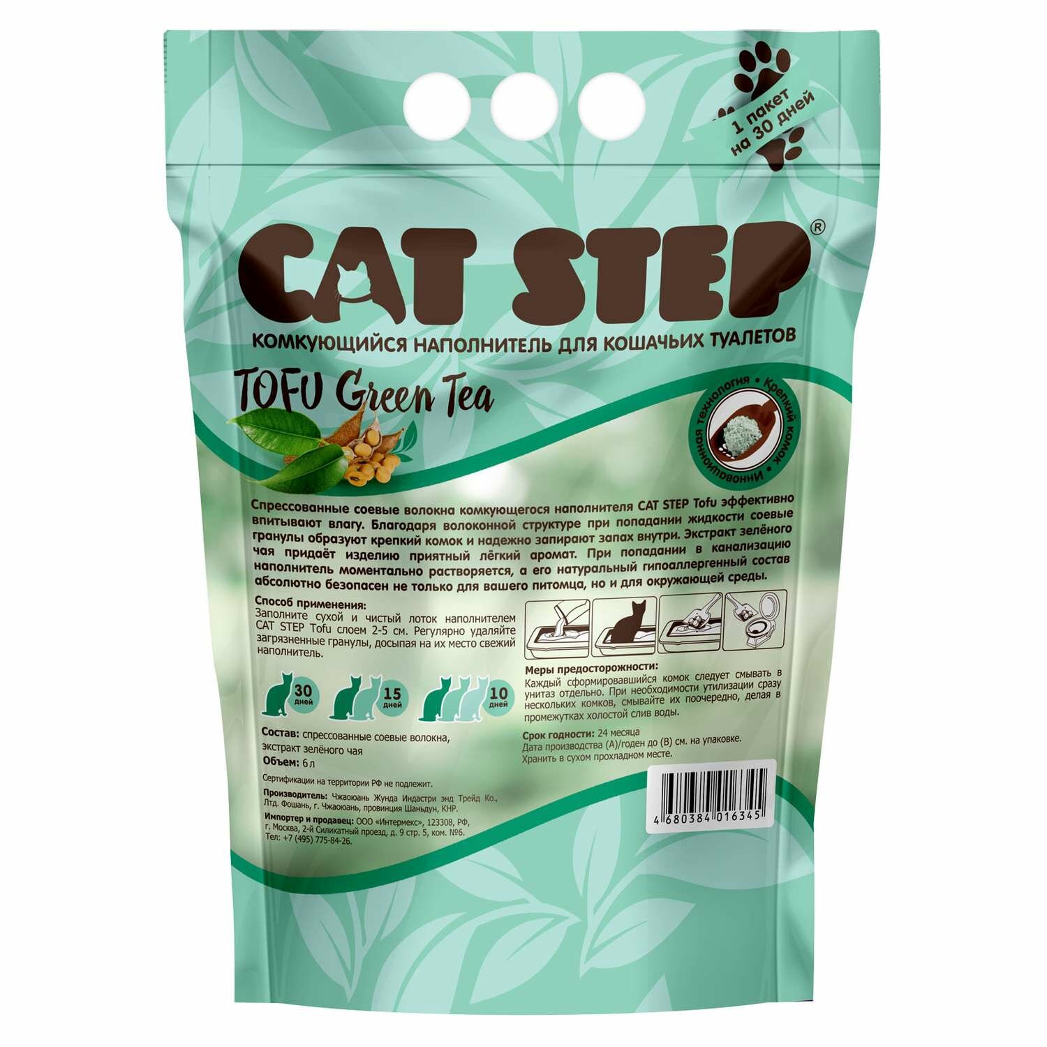 Cat Step Tofu Green Tea наполнитель для кошачьих туалетов растительный комкующийся - 6 л