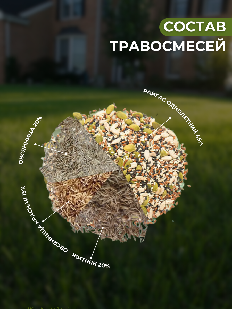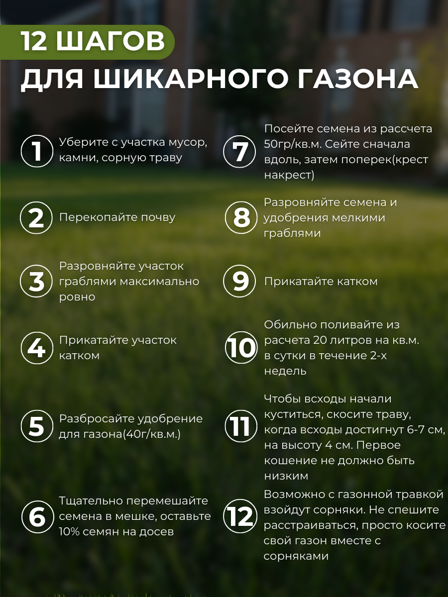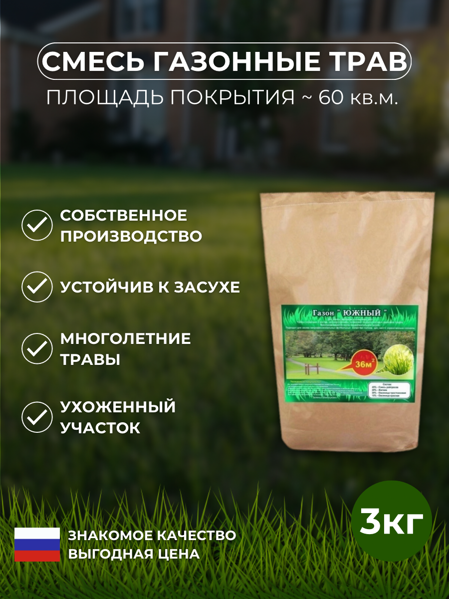 Газон Южный засухоустойчивый 3кг, смесь семян, газонная трава семена, овсяница, райграс, житняк, Зеленый Метр интересное: