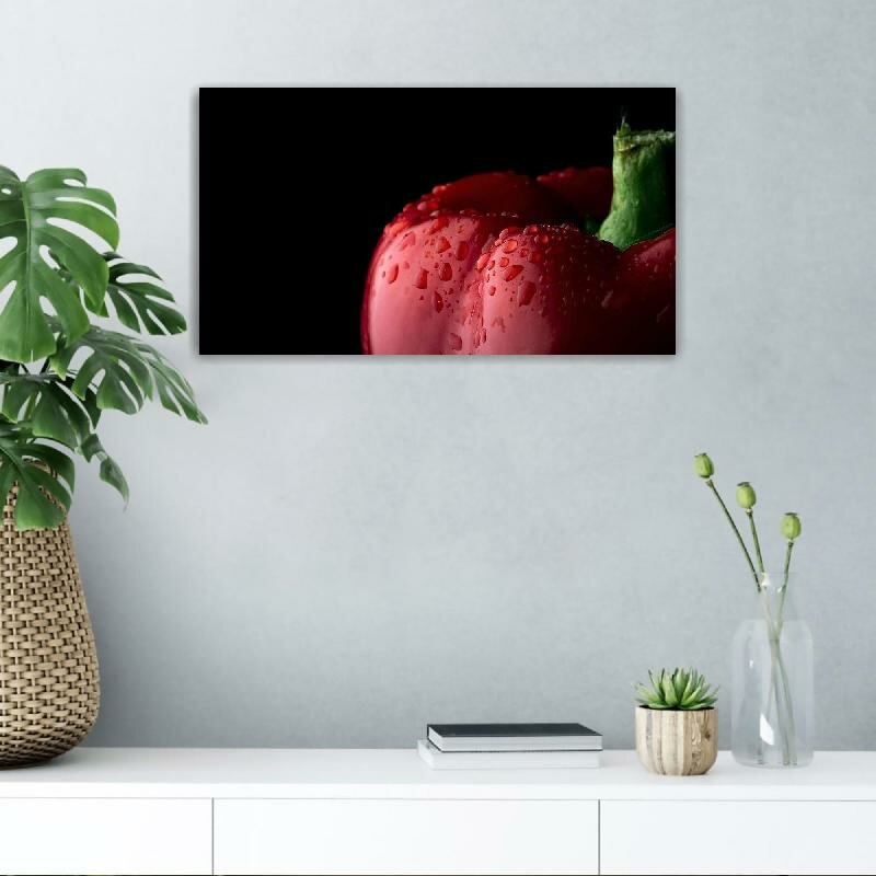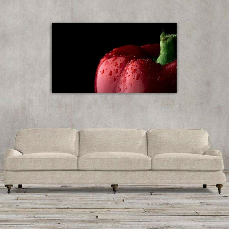 Купить Картина на холсте 60x110 LinxOne "Перчик капли макро вода красный" интерьерная для дома / на стену / на кухню / с подрамником