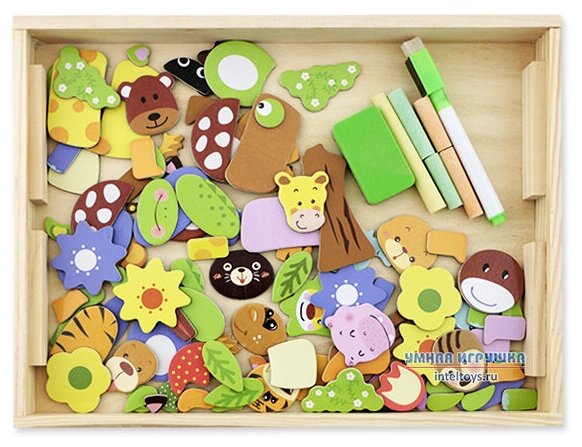 | Отзыв: | Замечательная развивающее пособие для деток. Можно рисовать мелками, фломастером, собирать различные фигуры животных, деревьев из магнитных пазлов. Ребёнку 2,5 года очень нравиться. |