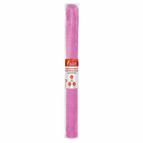 Цветная бумага крепированная, для флористики, 110 г/м, рулон, розовая, 50х250 см, остров сокровищ