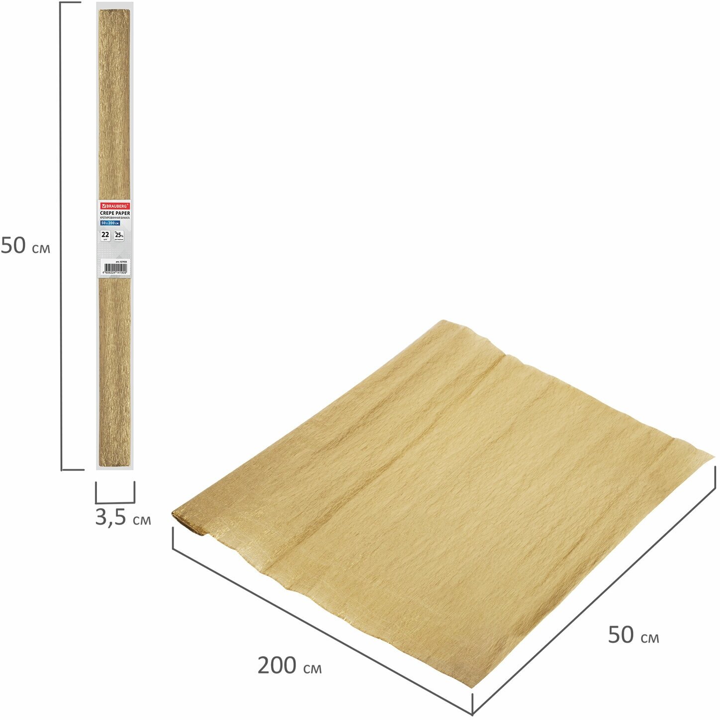 Цветная бумага Brauberg крепированная, золотая, растяжение до 25%, 22 г/м, рулон, 50х200 см (127935)