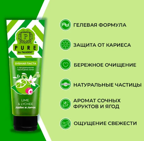 PURE by PRESIDENT Зубная паста \ личи и лайм \ 115 г интересное: