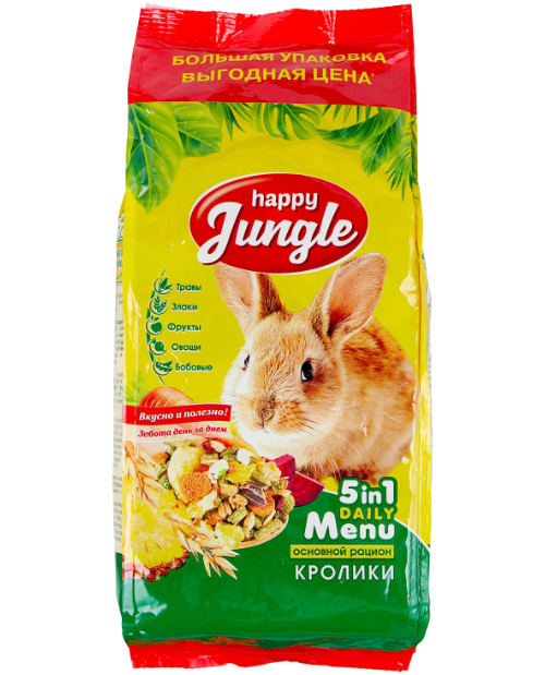 Корм для грызунов Happy Jungle / Хэппи Джангл для кроликов 900г / зоотовары для животных