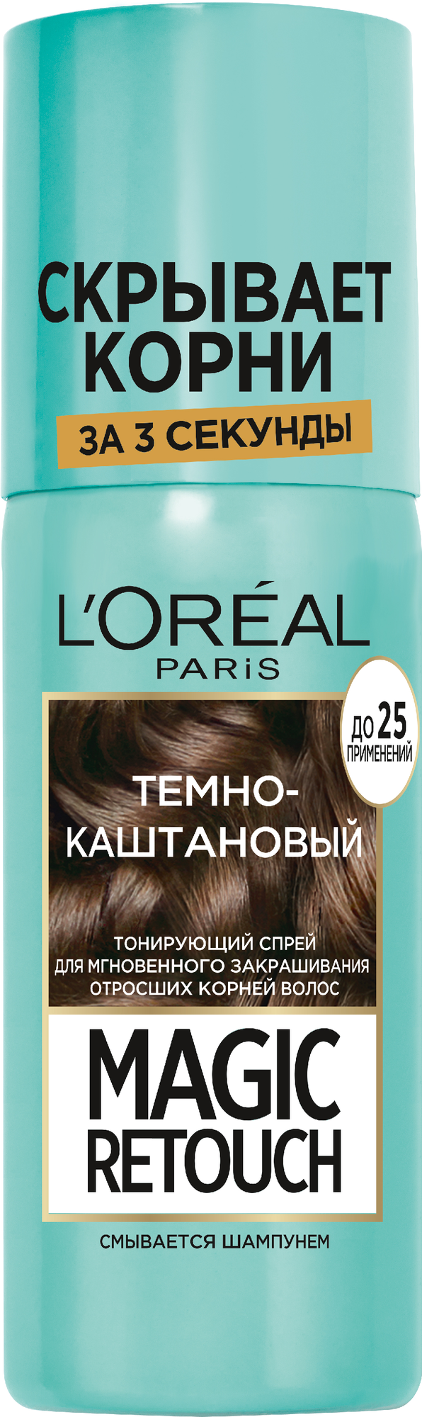L'Oreal Paris Спрей Magic Retouch для мгновенного закрашивания отросших корней волос, каштановый, 75 мл, 75 г