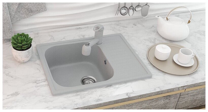 Мойка Ulgran, мрамор, U-202-310, (640*490*190 мм), серый, сифон и сливная арматура в модуль 450